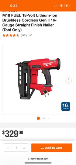 Milwaukee M18 16 Gauge Finish Nailer$290Montebello, CA