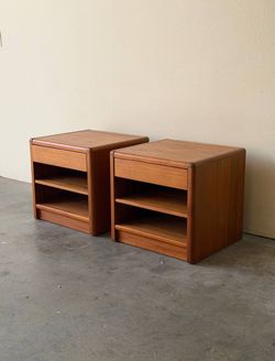 Pair Danish Teak Nightstands Mid Century Modern Bedside Tables w Drawer Shelf$900Torrance, CA