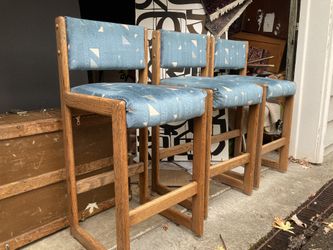 Set Of 4 FOUR VTG Mcm Bar Chairs Upholstered Velour Carpet Teal Turquoise Wood Oak Mid Century Modern Usa Danish Like Portland Pdx Airport Rug $99Portland, OR