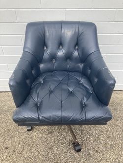 Vintage Mid Century Modern Tufted Leather Swivel Desk Chair Tilt Rolling Wheeled Lounge Office Blue Gold Mcm eames Herman miller chesterfield sofa sty$999Portland, OR