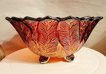Vintage Imperial Glass Red Acanthus Leaf Footed Carnival Glass Bowl$40Aurora, IL