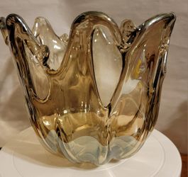 White Murano Italy Handmade Art Glass Smoke Grey 8" Freeform Bowl Vase$50Aurora, IL