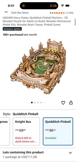 Harry Potter 3D Quidditch Wooden Pinball Machine Model Kit$50Citrus Heights, CA