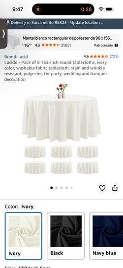 6 pack 132” Round Ivory Tablecloths$50Citrus Heights, CA
