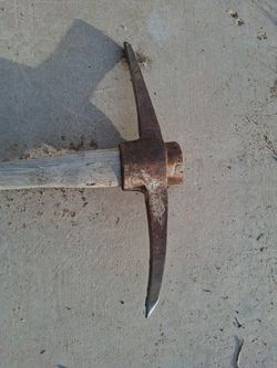pickaxe, a hand tool with a metal head perpendicular to a wooden handle, used for prying, breaking rocks, and digging$5Victorville, CA