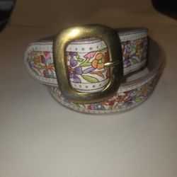 Lucky Brand Leather Flower Embroidered Brown White Buckle Tarnished Belt 32 In - 38 In $10Boca Raton, FL