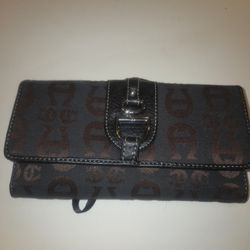 Etienne Aigner Tri-fold Signature Black Brown Cloth Silver Hardware Wallet New$15Boca Raton, FL