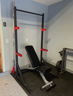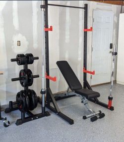 Squat Rack , Adjustable Bench , Weight Bench , Olympic Barbell , Rubber Weights Gym Equipment $920Chula Vista, CA