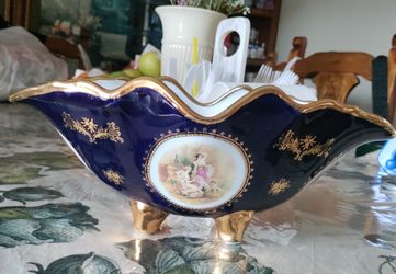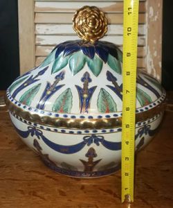 Hand Painted Asian Pottery Bowl With Gold Rose On Lid and Holder $60Chandler, AZ