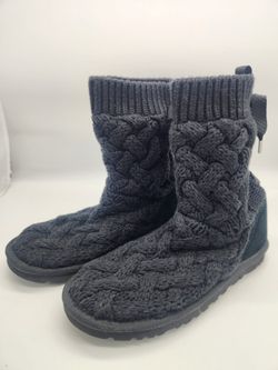 UGG Isla Black Knitted Bow Back Tie Slip On Ankle Boots, Size 6$30Fullerton, CA