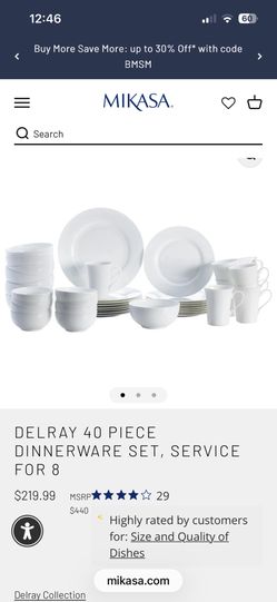 MKSA DELRAY 40 PIECE DINNERWARE SET, SERVICE FOR 8$100Moreno Valley, CA