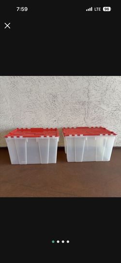 Two Red 12 Gallon Attached Hinged Lid Storage Container Bin Box Tote$10San Diego, CA