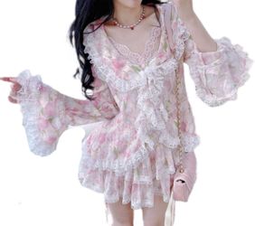 Y2K Japanese Style Lightweight Baby Pink Chiffon Flower Print with White Double Layer lace Ruffle Big Collar Floral Long Sleeve Blouse Cardigan M-XXL$42Los Angeles, CA