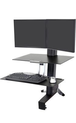 Ergotron – WorkFit-S Dual Monitor Standing Desk Converter, Sit Stand Workstation for Tabletops – With Worksurface, Black$300Seattle, WA