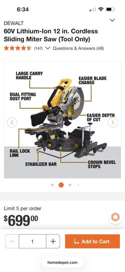 DeWalt 12” Inch Flex Volt Miter Saw DCS781B$600Palmdale, CA