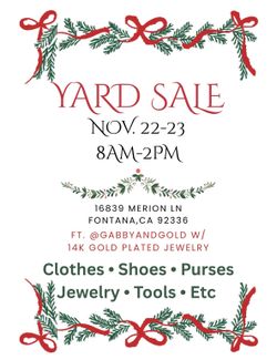 Yard Sale Friday And Saturday 12/12 And 12/13$1Fontana, CA