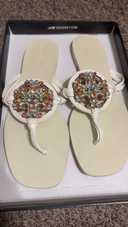 Tory Burch Cream Crystal Leather Rhinestones Miller Sandals $150Grand Prairie, TX