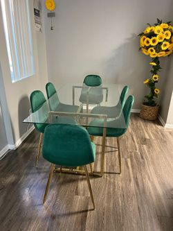 Emerald Green Gold Velvet Glass Dining Set $599Los Angeles, CA