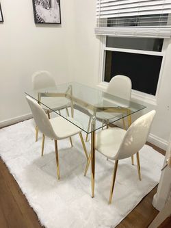 Modern Gold Glass Dining Table And 4 Cream Chairs$360Los Angeles, CA