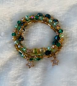✨ Handmade Beaded Bracelet Stack – Emerald & Gold with Star Charms – Stretchy & Unique ✨$22Highland, CA