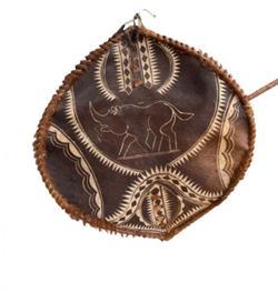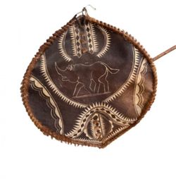 African Hide Shield w/ Rhinoceros Motif – Tribal Wall Display – 28″$150Federal Way, WA