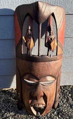 Large African Carved Wood Mask Wall Sculpture w/ Warrior Figures – 32.5″ Tall$120Federal Way, WA