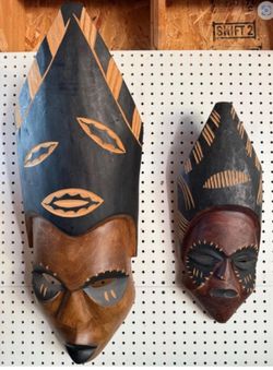 Pair of African Carved & Painted Wood Masks – Large Wall Display – 21”-29” in H$130Federal Way, WA