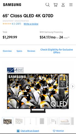 Samsung QLED Q70D 65” Smart TV$800Chicago Ridge, IL