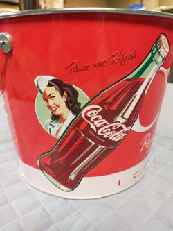 Coke , Coca Cola Tin Metal Bucket With Vintage Green Glasses $45Campbell, OH