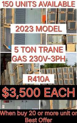 150 UNITS AVAILABLE 2023 MODEL 5 TON TRANE GAS 230V-3PH 4OA $3,500 EACH When buy 20 or more unit or Best Offer$3,500Los Angeles, CA