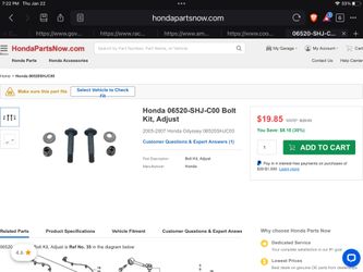 Honda Odyssey Rear Suspension Lower Adjustment Bolt $20Schererville, IN