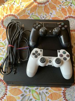 PS4 Console Play Station 4 Slim Design 2 Controllers Wires Good Condition $140Ronkonkoma, NY