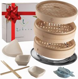 LUKARA Bamboo Steamer Basket – Dumpling Steamer Bamboo with Accessories – Bamboo Steamer 10 Inch with Silicone Steamer Liners, Cookbook, Chopsticks$20Troy, MI