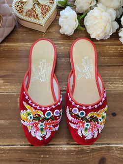 SIZE 2 GIRLS BIG KIDS RED VELOUR BEADED FLORAL SLIP-ON SHOES/SLIPPERS$5Merced, CA