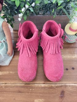 SIZE 2 GIRLS BIG KIDS HELLO KITTY MINNETONKA LEATHER FRINGE MOCCASIN BOOTS$10Merced, CA