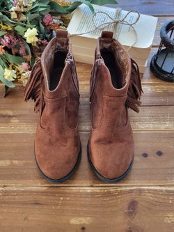 SIZE 3 GIRLS BIG KIDS CHESTNUT BROWN SUEDE ANKLE SIDE FRILL BOOTS$2Merced, CA