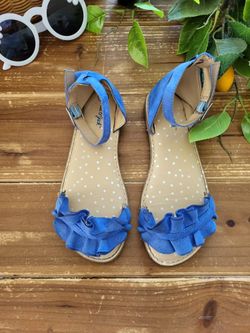 SIZE 2 GIRLS BIG KIDS CORNFLOWER BLUE SUEDE LIKE RUFFLE ANKLE STRAP SANDALS$5Merced, CA