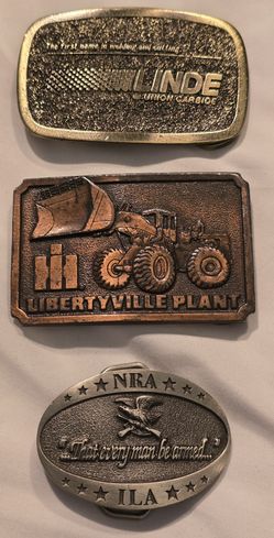 Vtg. Lot of 3 Belt Buckles NRA ILA USA, LINDE USA, LIBERTYVILLE PLANT$50Salem, WI