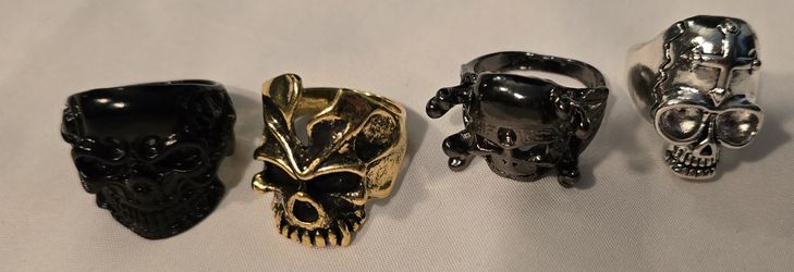 Vtg. Biker Style Lot Of 4 Skull Rings 2 Black, 1 Goldtone And One Silvertone $90Salem, WI