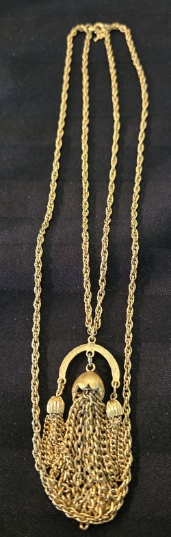 Vtg. Signed Crown Trifari Goldtone 22" Twisted Rope Layered Chain Pendant Rare Find!$85Salem, WI