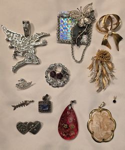 Vtg. Lot Od 13. 8 Pendant's 5 Brooch/label Some 925 And Some Signed Swarovski Jim Clift Rare Find!$120Salem, WI