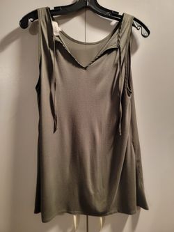 Ann Taylor Loft Solid V-Neck Tank Top in a dark sage green color with a decorative tie at the neck. Size Medium$10Garner, NC