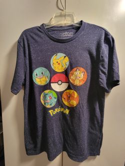 Blue speckled men's Pokémon Pikachu, Charmander, Bulbasaur, Squirtle, and a Poké Ball Size Large$15Garner, NC