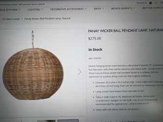 New Wicker Rattan Light Fixture Bobo Large 20x16.5 The Chain Is 27” Can Be Shortened .. Great Deal!$95Litchfield Park, AZ