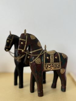 Antique Wooden Carved Horses With Brass Inlays$50Glmn Hot Spgs, CA