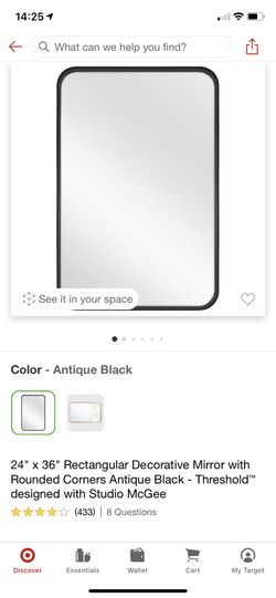 24" x 36" Rectangular Decorative Mirror with Rounded Corners AntiqueBlack-Threshold™ designed with Studio McGee $30Chandler, AZ