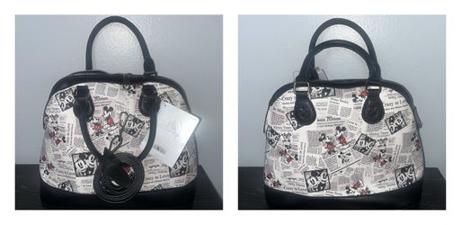 Disney Parks Authentic Mickey & Minnie Mouse Newsprint Satchel Handbag w/ strap inside (NWT) $50Simi Valley, CA