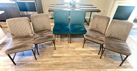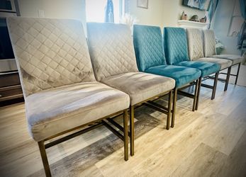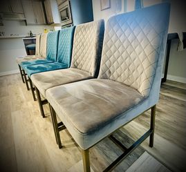 ✨$399 OBO: SIX Macys Cambridge Diamond Tufted Velvet Chairs Teal & Silver • MCM • GORGEOUS!✨$399Winchester, CA