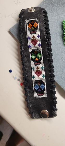 Leather Beaded Inlay Wrist Band .hand Made.$10Di Giorgio, CA