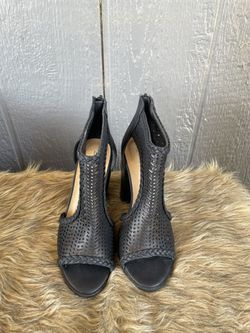 Black leather cutout peep toe sandals Size6.5$10Fresno, CA